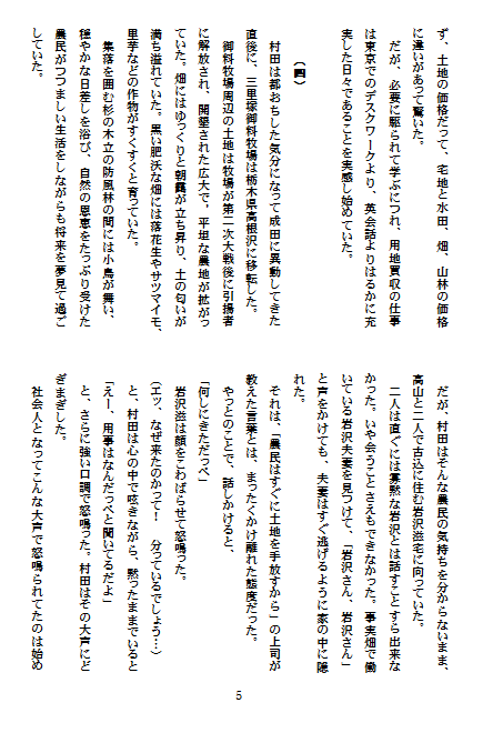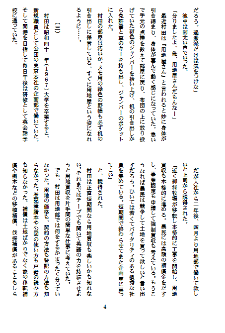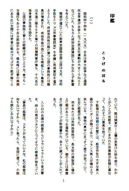『みさと』8号の印刷の発注も終り、間もなく手元に届くと思われます。来月からは、新刊の中から次々に作品を紹介していきますので、乞うご期待です。それまでは発表できる作品が少なくて、読者の皆様には歯がゆい思いをさせてしまいました。同人の過去の作品から、紹介させていただきます。今回は、成田空港開港までの奇跡の中から、用地買収にあたられた方々の苦労を偲んで、実際に用地買収の任務にあたられた方の作品です。では、どうぞ・・・・・・。