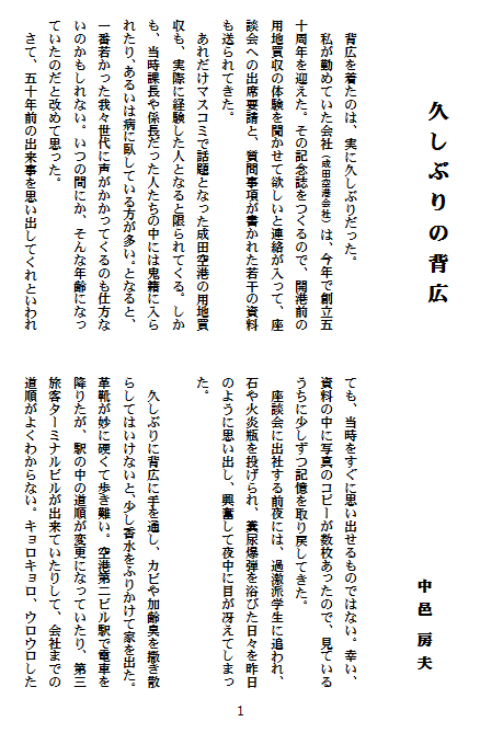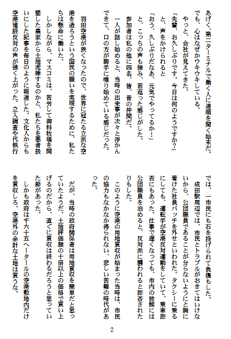この作品は、成田空港開港の開港に関わった作者(とうげ のぼる)が、空港開港までの裏面史的面から、語り継がなければならないことであるとの思いから、あえてペンネームを捨てて書き表した作品です。空港開港までの知らざれなかった苦労や苦闘があったことを、何の気なしに利用している人々の知っていただきたいと思います。なお、今後この秘話ともいえる事柄は、シリーズとして掲載する予定です。ぜひお読みいただきたく思います。